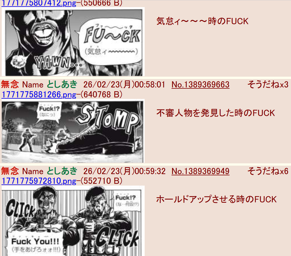 | … | 99無題Nameとしあき 26/02/24(火)12:32:18 ID:wuyM8GR.No.1530705+ 1771903938813.png-(569962 B) 実装は「デス」で会話し関西人は「なんや」で会話しアメリカ人は「ファック」で会話する |