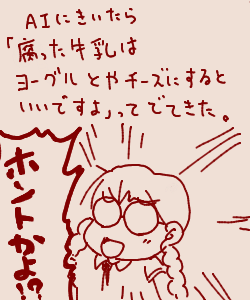 … | 82無題Name名無し 25/09/16(火)23:42:14 IP:1.73.*(spmode.ne.jp)No.6764そうだねx1腐った牛乳って苦いのか⋯⋯ |