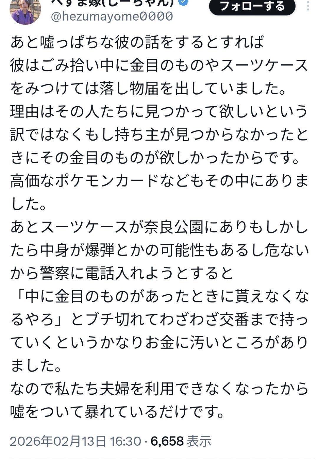 | … | 5無念Nameとしあき 26/02/09(月)11:59:03No.25355944+鳥取県倉吉市 私は毎日まるで逃亡犯のような監視位置共有ストーカー行為を受けています。 |