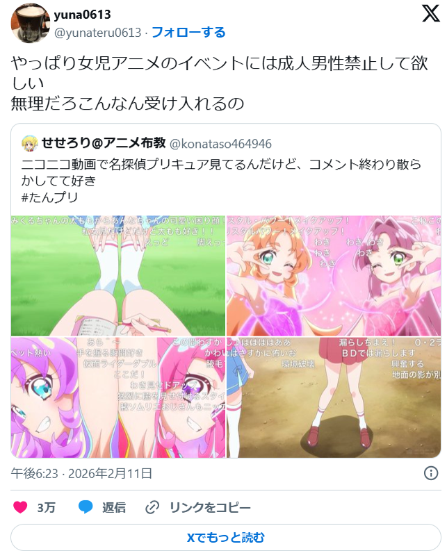 | … | 11無念Nameとしあき 26/02/10(火)11:05:39No.25356579+ 1770689139686.webp-(69180 B) >中国で「コナン」コスプレ禁止 「侮辱漫画」とのコラボ問題視 |