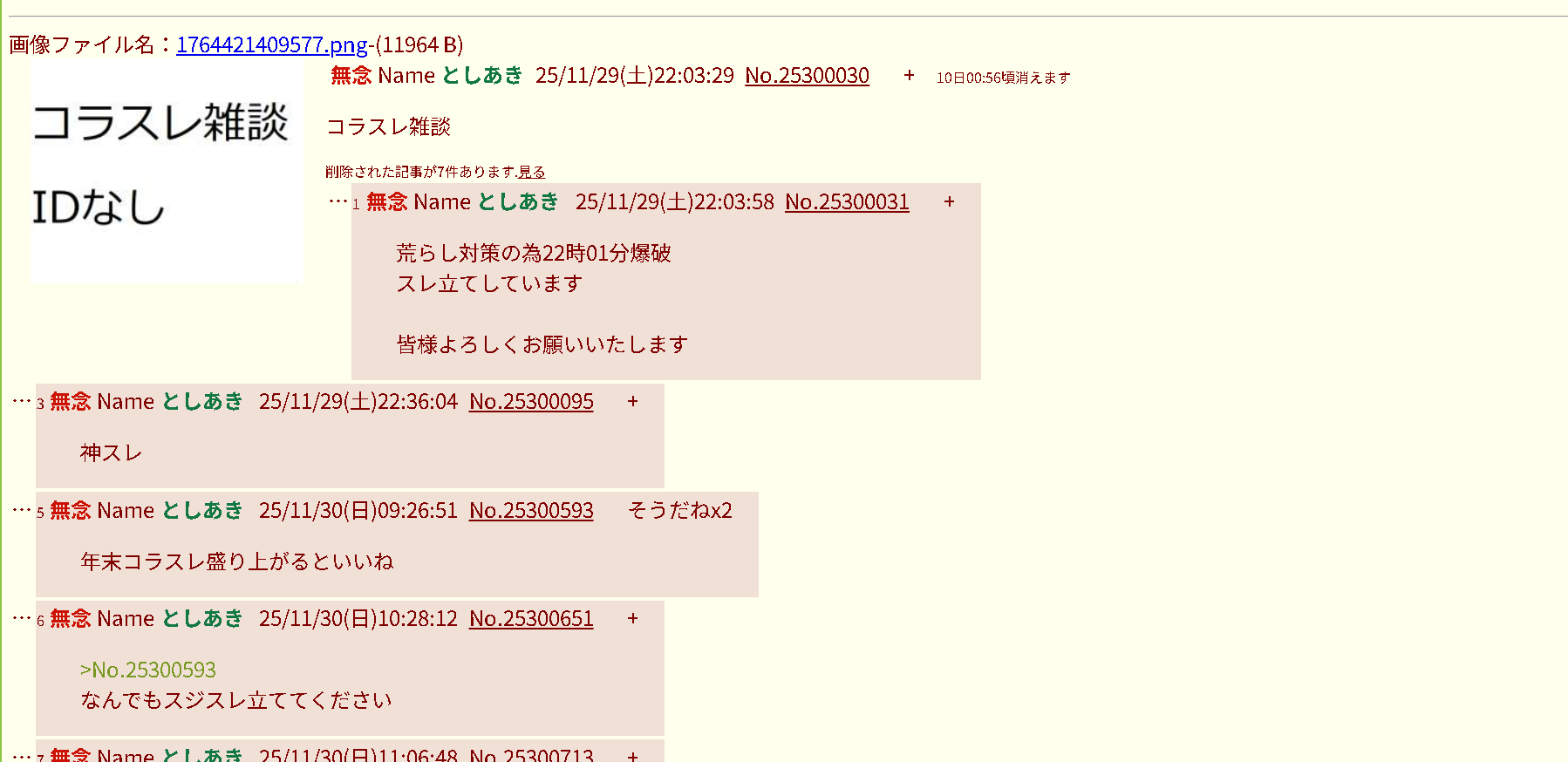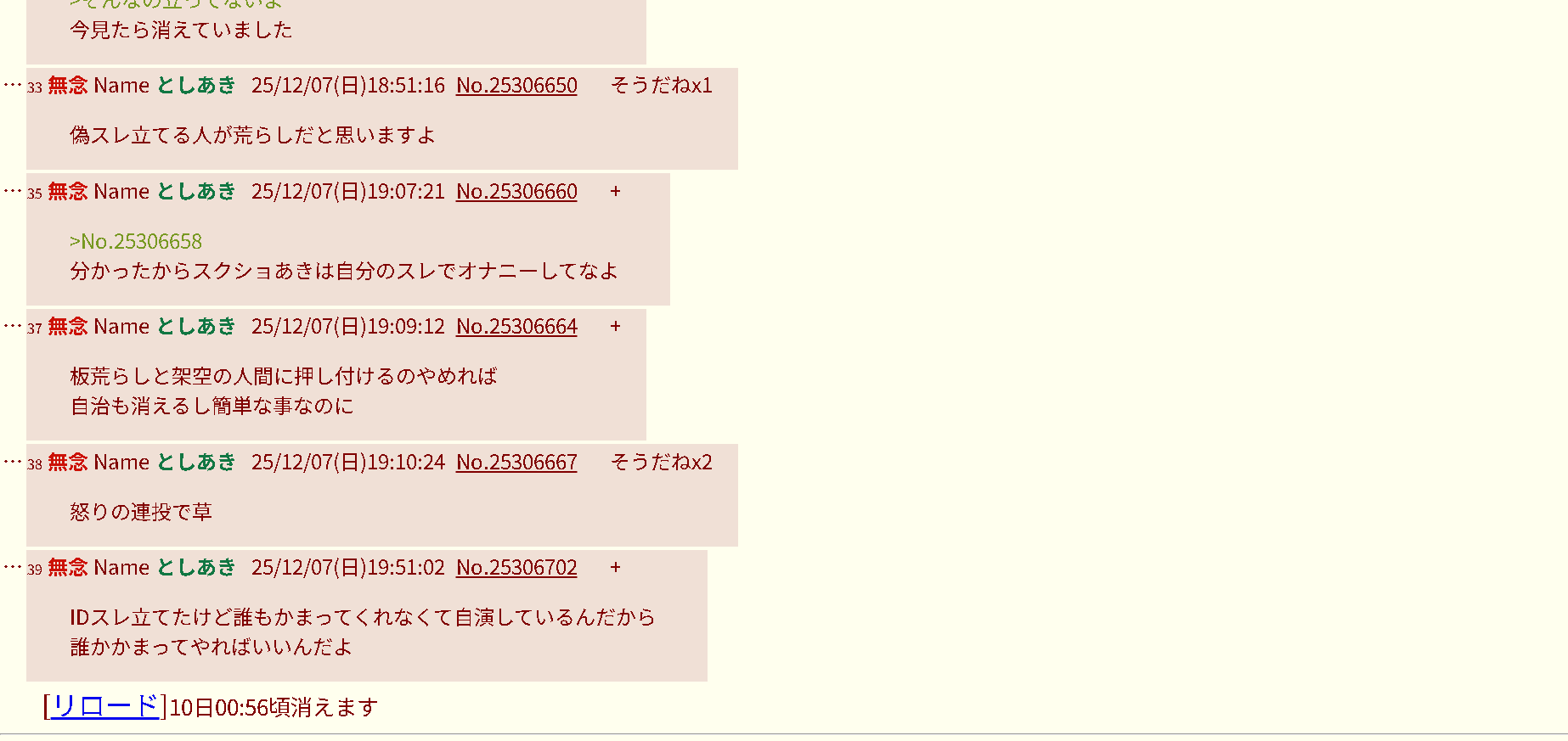 | … | 5無念Nameとしあき 25/12/08(月)08:41:34No.25307464+こいつは立てては爆破を繰り返すキチガイ乱立常習犯! |