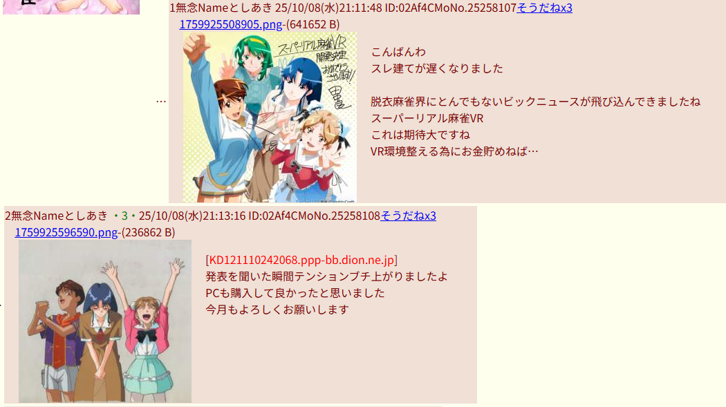 | … | 19無念Nameとしあき 25/11/10(月)00:17:34 ID:4P7zJ6dwNo.25285098+以前のIPが今月と同じものに変わってた先月のスレが正常に進行してたこと |