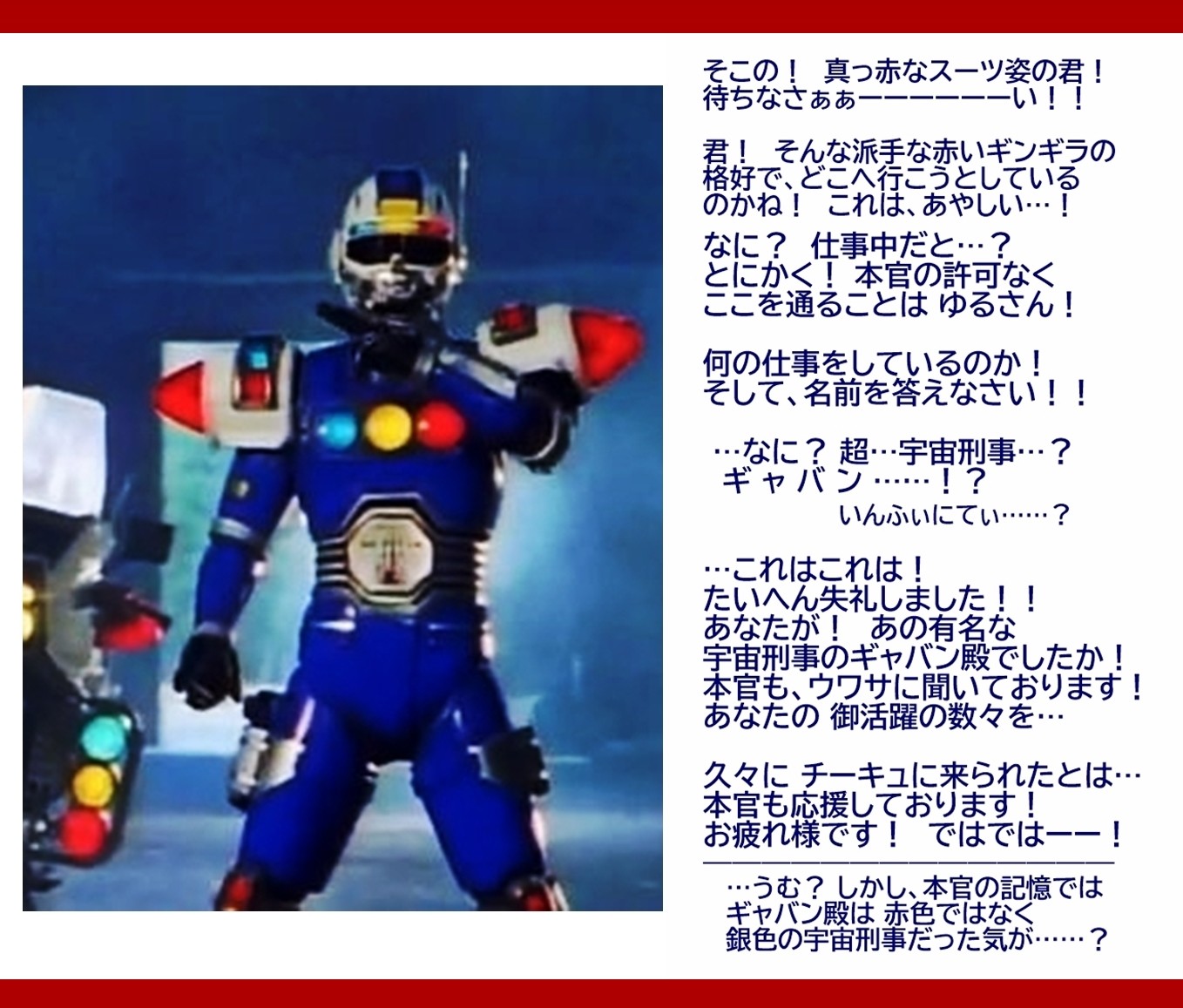 | … | 17無念Nameとしあき 26/03/27(金)22:48:13 ID:PzmgM/a6No.25392190そうだねx1 1774619293211.jpg-(680434 B) >>超ギャバンでメタルヒーローを大方昇華するつもりなんでしょうか…? |