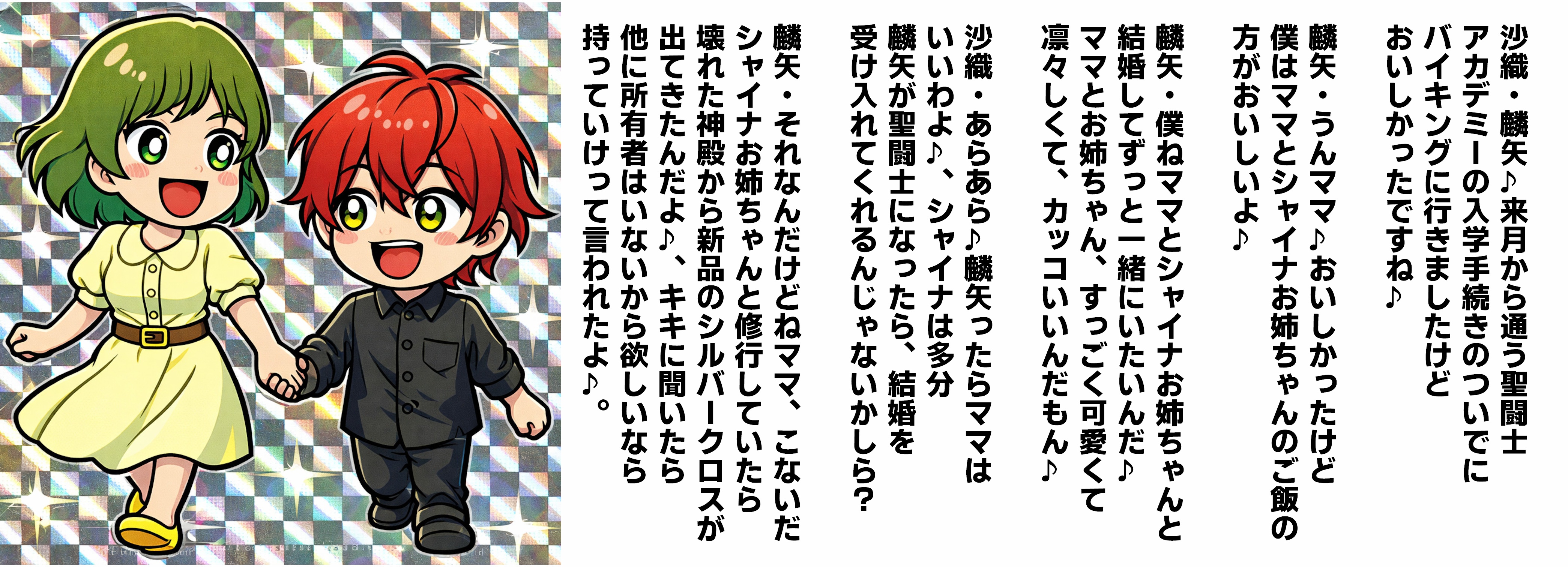 | … | 19無念Nameとしあき 26/03/27(金)22:59:22 ID:BR518/KkNo.25392194そうだねx1 1774619962946.jpg-(343861 B) 立て乙です今回もこないだの聖闘士星矢ネタで今度は原作とオメガを流用してママショタとおねショタネタにしました、まずは1枚目タイトルからです |