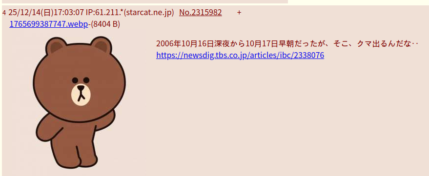 | … | 5無題Name名無し 25/12/15(月)00:19:31 IP:14.9.*(enabler.ne.jp)No.104103+見る人間のための模範的レス |