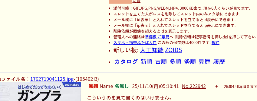 | … | 1無題Name名無し 25/11/10(月)05:11:31No.222943+ 1762719091219.jpg-(165321 B) 本文無し |