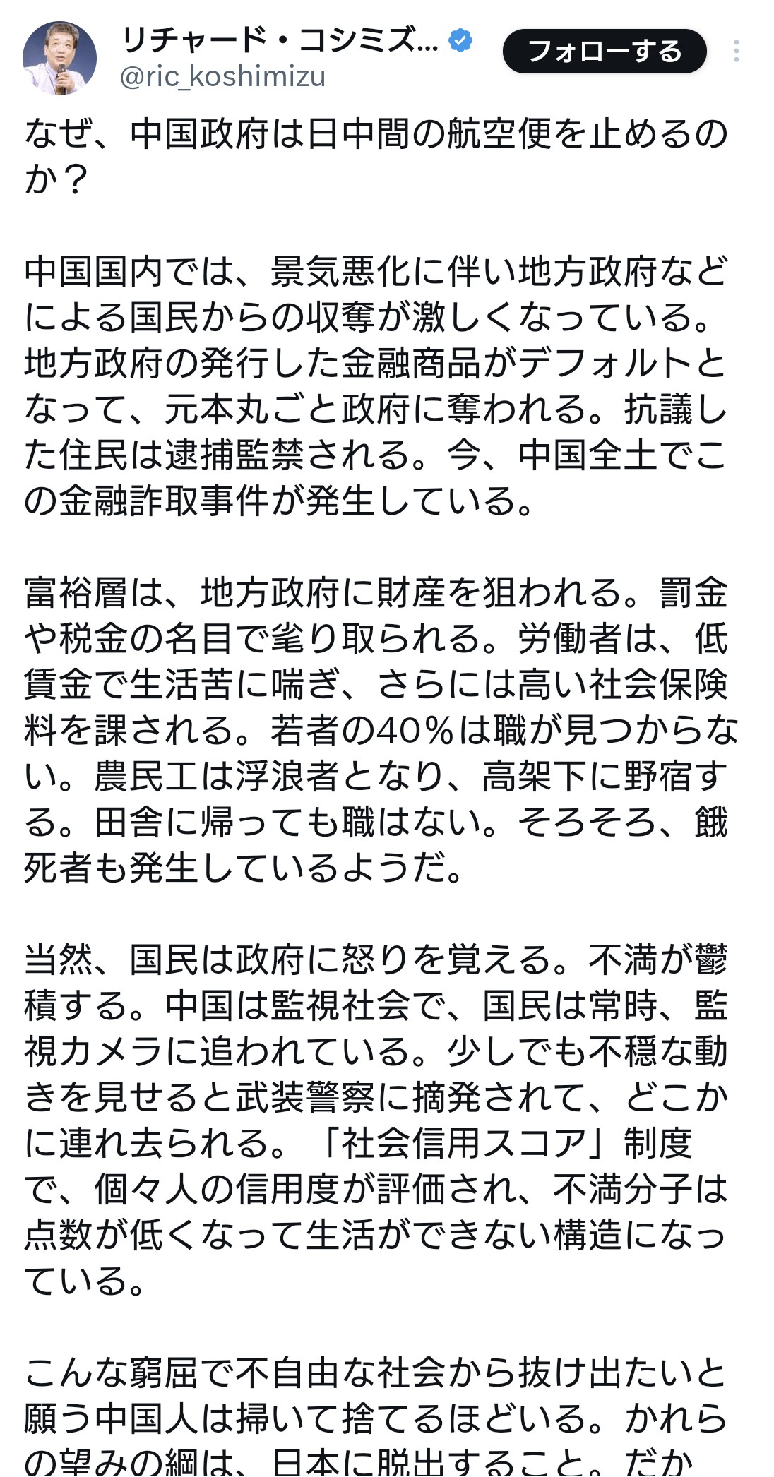 なぜ、中国政府は日中間の航空便を止めるのか?