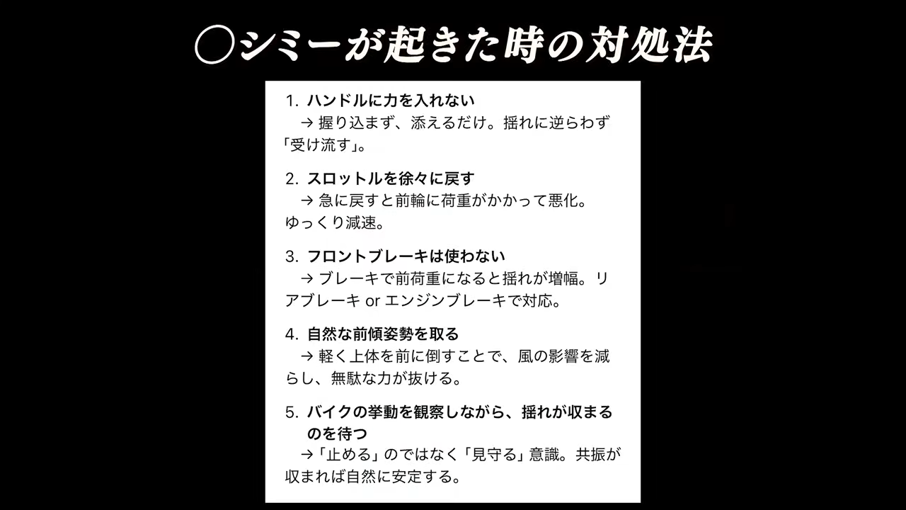 | … | 15無題Name名無し 25/12/04(木)09:08:24 IP:14.10.*(enabler.ne.jp)No.1390652+バイクは直進時にも細かく左右に微調整をバイク自身が繰り返し直進してるからタイヤの種類状況と接地状況、Fフォーク周りの重量のタイミング合うとソレが共振し始めて制御不能になるのよ |