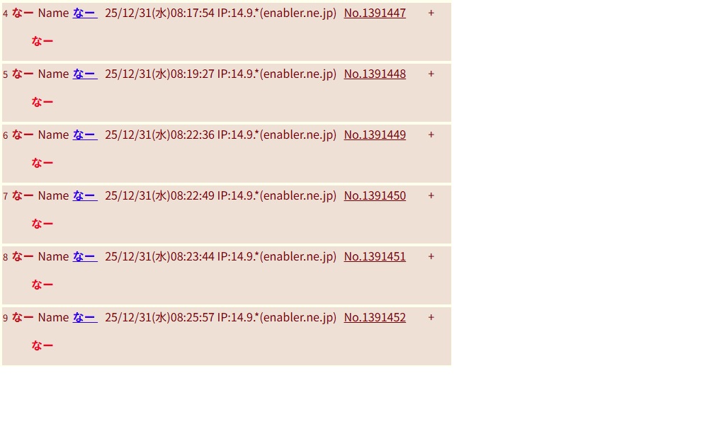 | … | 6なーNameなー 26/01/03(土)00:27:26 IP:14.9.*(enabler.ne.jp)No.1391572+なー |